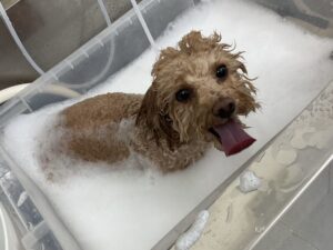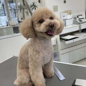 毎月オゾンマイクロナノバブル浴+歯磨きのカットコースをご利用のトイプードルのなぎくんは、体5㎜テディベア四肢細くのご注文です