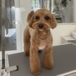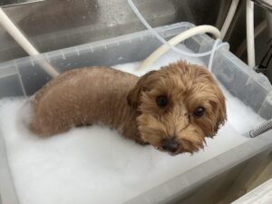 毎月オゾンマイクロナノバブル浴のカットコースをご利用のミックス犬(マルチーズ×トイプードル)のななちゃんは、体5㎜おテディベア四肢細めのベルボトムのご注文です