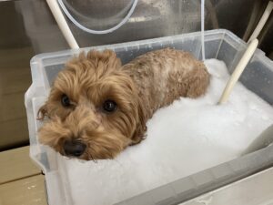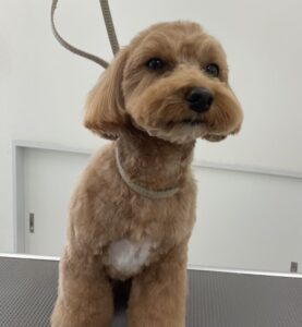 毎月オゾンマイクロナノバブル浴のカットコースをご利用のミックス犬(マルチーズ×トイプードル)のななちゃんは、体5㎜おテディベア四肢細めのベルボトムのご注文です