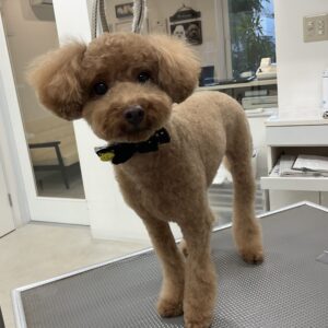 毎月カットコース+歯磨きをご利用のトイプードルのにこくんは、お顔はテディベア体6㎜サマーマイアミのご注文です