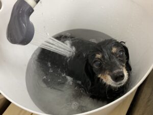 毎月オゾンマイクロナノバブル浴+炭酸泉浴のシャンプーコースをご利用のミックス犬(チワワ×ダックス)のにこちゃんです