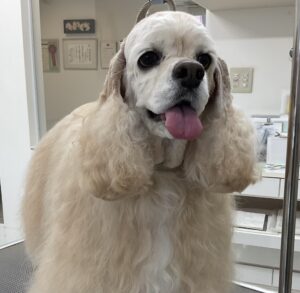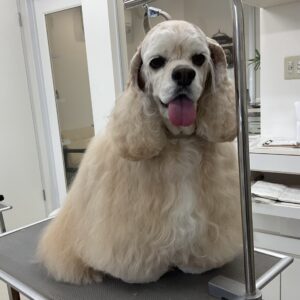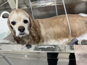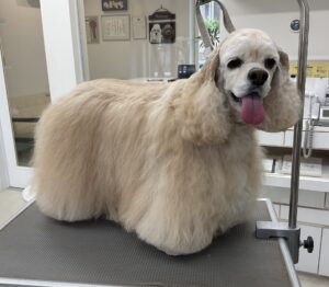 2週間毎にご来店のアメリカンコッカーのねねちゃん、今日はオゾンマイクロナノバブル浴で体3㎜コッカーカットのご注文です