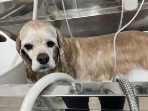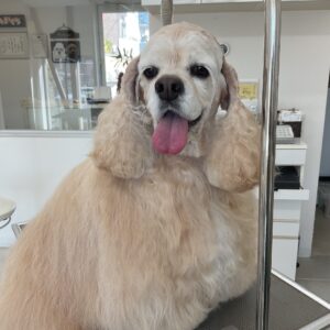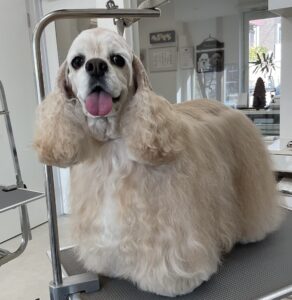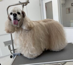 2週間毎にご来店のアメリカンコッカーのねねちゃん、今日はオゾンマイクロナノバブル浴で体3㎜コッカーカットのご注文です