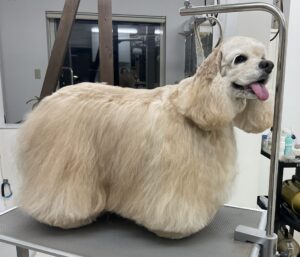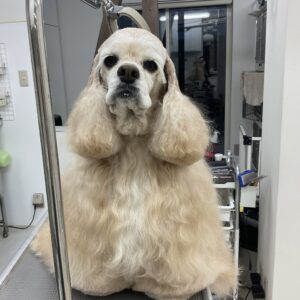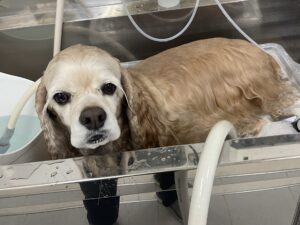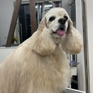 2週間毎にご来店のアメリカンコッカーのねねちゃん、今日はオゾンマイクロナノバブル浴で体3㎜コッカーカットのご注文です