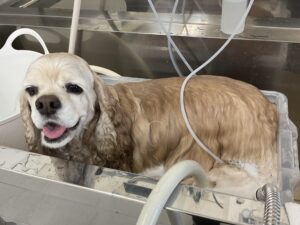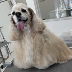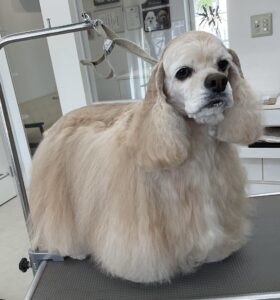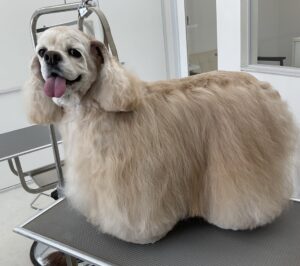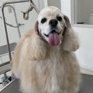 2週間毎にご来店のアメリカンコッカーのねねちゃん、今日はオゾンマイクロナノバブル浴で体3㎜コッカーカットのご注文です