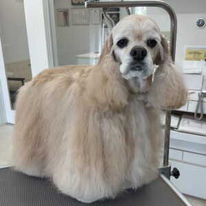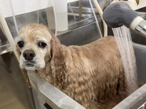 2週間毎にご来店のアメリカンコッカーのねねちゃん、今日は炭酸泉浴+トリートメントのシャンプーコースをご利用です