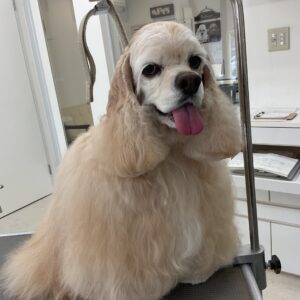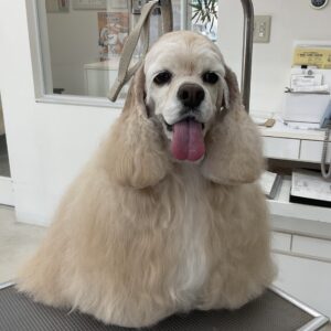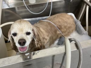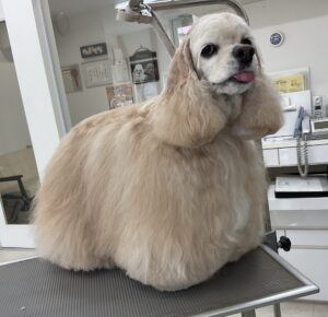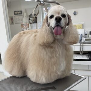 2週間毎にご来店のアメリカンコッカーのねねちゃん、今日はオゾンマイクロナノバブル浴で体3㎜コッカーカットのご注文です