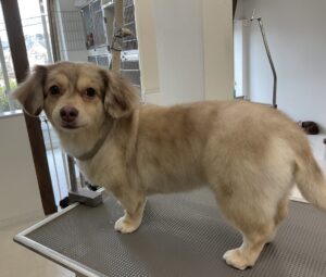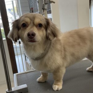 シャンプーコースをご利用のミックス犬(チワワ×ダックス)のはなちゃんです