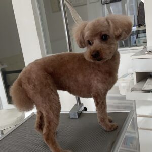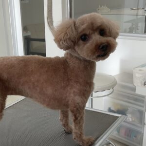 ⒈5ヶ月毎にカットコースをご利用のトイプードルのはなちゃんは、体5㎜全バリお顔も短くテディベアのご注文です