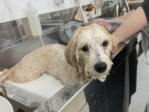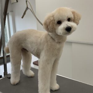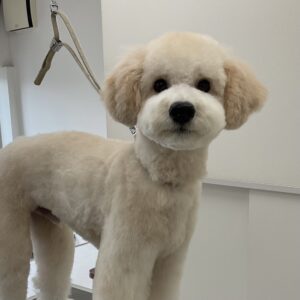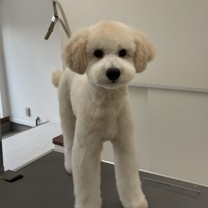ご新規でご来店のトイプードルのぱふくんは、体10㎜テディベアお耳は短く丸くのご注文です。初回サービスのオゾンマイクロナノバブル浴のお試しで殺菌抗菌消臭作用と毛根の奥の老廃物を除去しますのでふんわり艶やかボリュームUPの仕上がりです