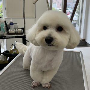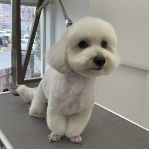 毎月カットコースをご利用のミックス犬(マルチーズ×ダックス)のぶーくんは、体8㎜お顔は短く丸くのご注文です