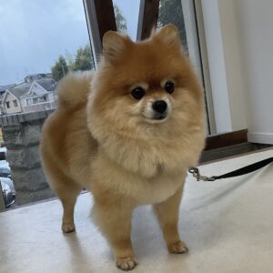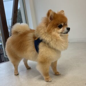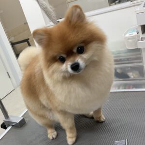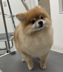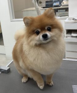 オゾンマイクロナノバブル浴の鋏仕上げのポメカットをご利用のポメラニアンのぷーくんです