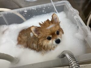 オゾンマイクロナノバブル浴のシャンプーコースをご利用のポメラニアンのぷーくんです
