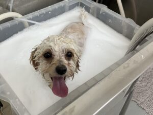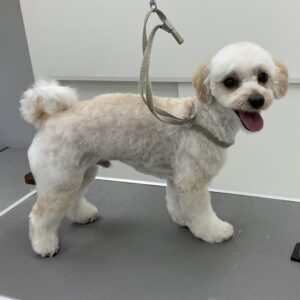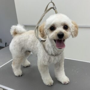 ご新規でご来店のミックス犬(マルチーズ×トイプードル)のぽてとくんは、体6㎜テディベアお耳は耳なりに短くのご注文です。初回サービスのオゾンマイクロナノバブル浴のお試しで殺菌抗菌消臭作用と毛根の奥の老廃物を除去しますのでふんわり艶やかボリュームUPの仕上がりです♪