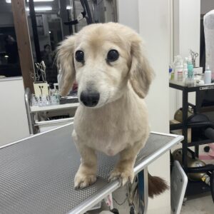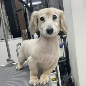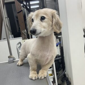 毎月カットコースをご利用のミニチュアダックスのぽん太くんは、体3㎜全バリのご注文です