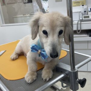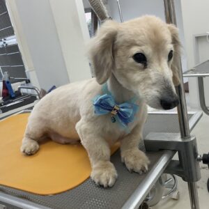 毎月カットコースをご利用のミニチュアダックスのぽん太くんは、体3㎜全バリのご注文です