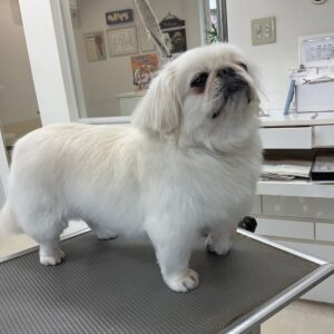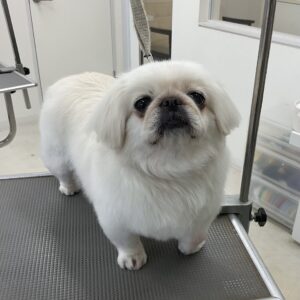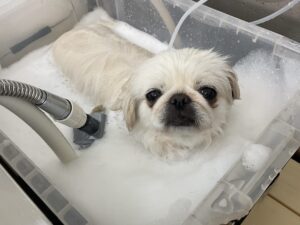 オゾンマイクロナノバブル浴のシャンプーコースをご利用のペキニーズのまろちゃんです