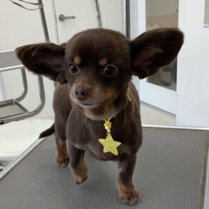 毎月ご来店のミックス犬(チワワ×ダックス)のみみちゃん,今日は体3㎜全バリのご注文です