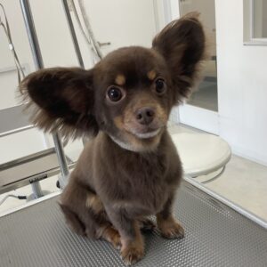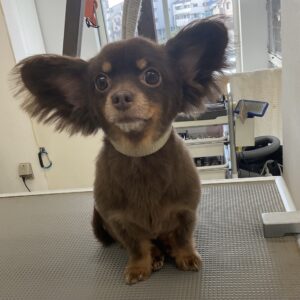 毎月ご来店のミックス犬(チワワ×ダックス)のみみちゃん、今日はシャンプーコースをご利用です