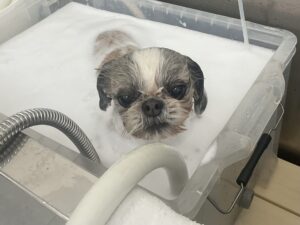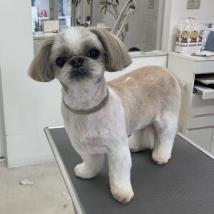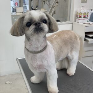 2ヶ月毎にオゾンマイクロナノバブル浴+炭酸泉浴+歯磨きのカットコースをご利用のシーズーのゆずちゃんは、体2㎜ 四肢細く お顔も短く丸くのご注文です