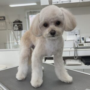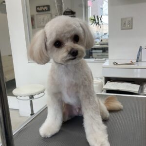 カットコースをご利用のミックス犬(チワワ×トイプードル)のりぷるくんは、体6㎜お顔はテディベアお耳も丸くのご注文です。