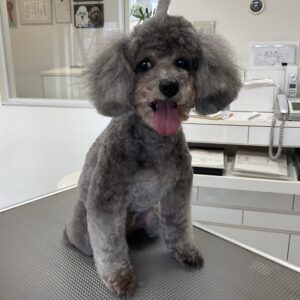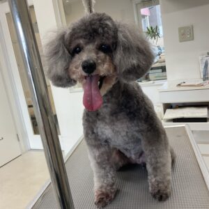 2ヶ月毎にオゾンマイクロナノバブル浴のカットコースをご利用のT・プードルのりんちゃんは、体5㎜ のテディベアカット四肢細く 口元ふっくらのご注文です。