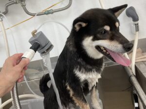 オゾンマイクロナノバブル浴のシャンプーコースをご利用の柴のろくくんです