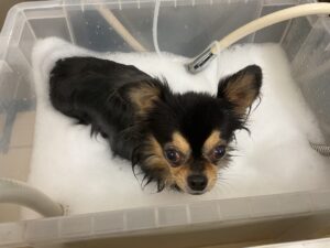 2ヶ月毎にオゾンマイクロナノバブル浴+炭酸泉浴のシャンプーコースをご利用のチワワのアトムくんです