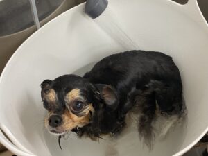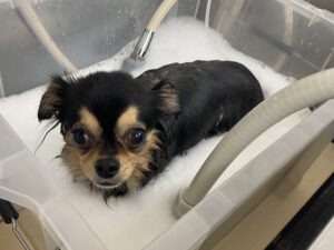 2ヶ月毎にオゾンマイクロナノバブル浴+炭酸泉浴のシャンプーコースをご利用のチワワのアトムくんです