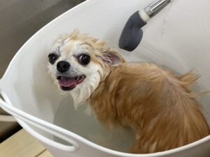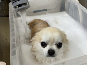 ⒈5ヶ月毎にオゾンマイクロナノバブル浴+炭酸泉浴のシャンプーコースをご利用のチワワのアポロくんです