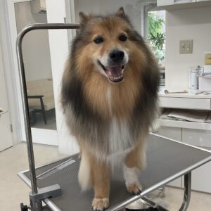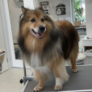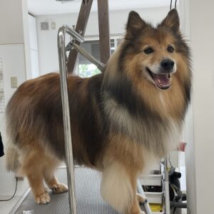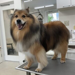 毎月シャンプーコースをご利用のミックス犬(スピッツ×シェルティ)のアンジュくんです