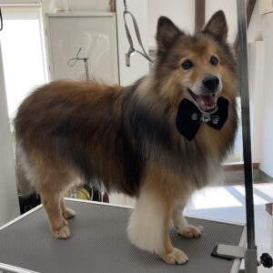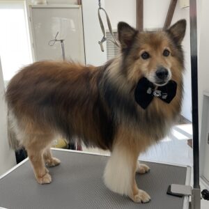 毎月シャンプーコースをご利用のミックス犬(スピッツ×シェルティ)のアンジュくんです
