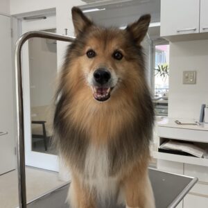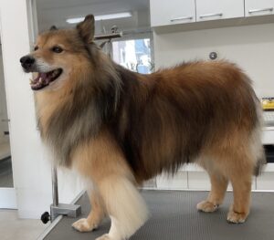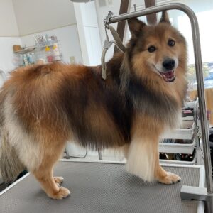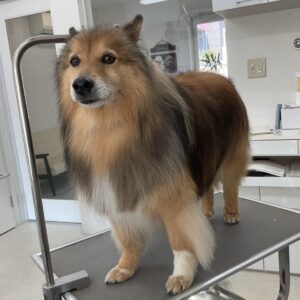 毎月シャンプーコースをご利用のミックス犬(スピッツ×シェルティ)のアンジュくんです