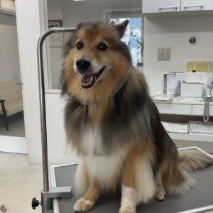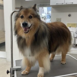 毎月シャンプーコースをご利用のミックス犬(スピッツ×シェルティ)のアンジュくんです