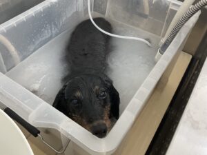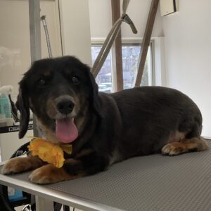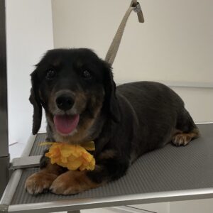 オゾンマイクロナノバブル浴のカットコースをご利用のミニチュアダックスのアヴリルちゃんは、体耳尾3㎜全バリのご注文です