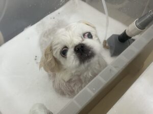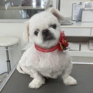 2ヶ月毎にオゾンマイクロナノバブル浴のカットコースをご利用のペキニーズのウールーちゃんは、体3㎜全バリのご注文です