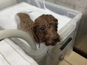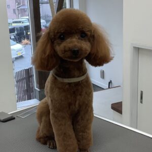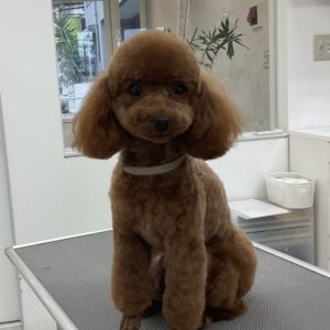 2ヶ月毎にカットコースをご利用のトイプードルのエルくんは、体5㎜おパンツ足先バリカンお顔はテディベアのご注文です