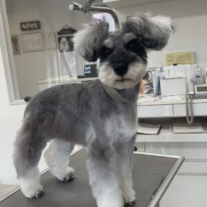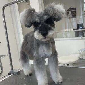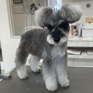 ⒈5ヶ月毎にカットコースをご利用のミニチュアシュナウザーのエルフィくんは、体2㎜シュナカットのご注文です