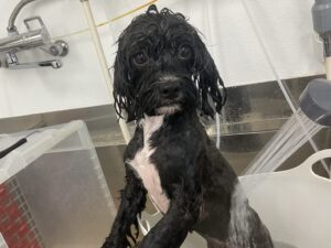 オゾンマイクロナノバブル浴+炭酸泉浴のカットコースをご利用のミックス犬(トイプードル×シーズー)のオレオくんは、体5㎜テディベア四肢太くライオンの尾っぽお耳は揃えます。