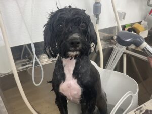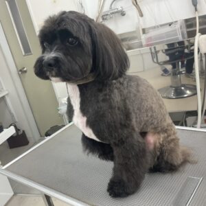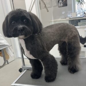 オゾンマイクロナノバブル浴+炭酸泉浴のカットコースをご利用のミックス犬(トイプードル×シーズー)のオレオくんは、体2㎜テディベア四肢太くライオンの尾っぽお耳は揃えます。