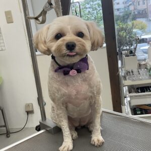 カットコースをご利用のミックス犬(チワワ×トイプードル)のカノンちゃんは、体2㎜全バリお顔も短く丸くテディベアのご注文です