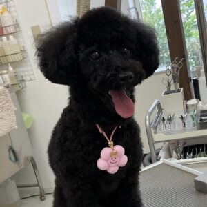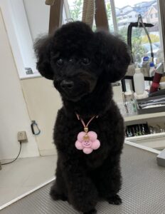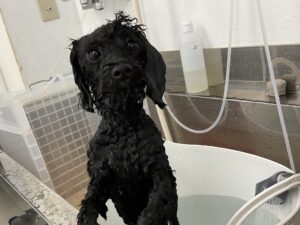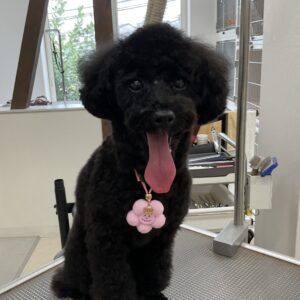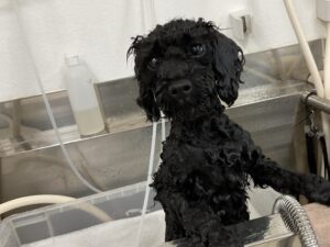 毎月ご来店のトイプードルのクロンちゃん、今日はオゾンマイクロナノバブル浴+炭酸泉浴のシャンプーコースでお顔はテディベアのご注文です