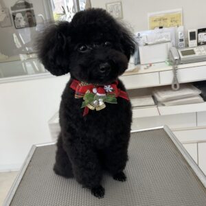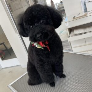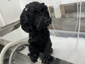 毎月ご来店のトイプードルのクロンちゃん、今日はオゾンマイクロバブル浴+炭酸泉浴のシャンプーコースでお顔はテディベアのご注文です