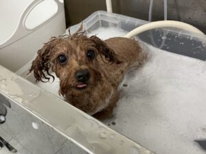 2ヶ月毎にオゾンマイクロナノバブル浴のカットコースをご利用のトイプードルのココアくんは、体5㎜テディベア四肢細くのご注文です