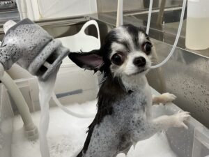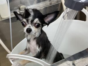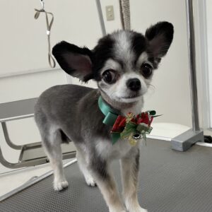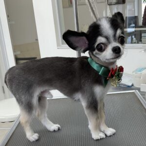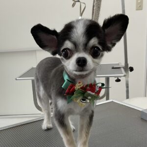 ⒈5ヶ月毎にオゾンマイクロナノバブル浴+炭酸泉浴+トリートメントのカットコースをご利用のチワワのココアくんは、体5㎜全バリ尾っぽはライオンのご注文です