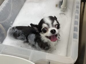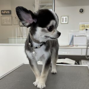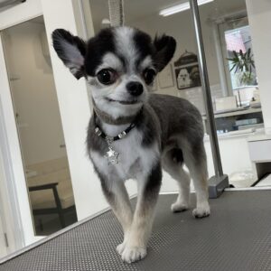 2ヶ月毎にご来店のチワワのココアくんは、オゾンマイクロナノバブル浴+炭酸泉浴のカットコース+トリートメントで体5㎜全バリ尾っぽはライオンのご注文です。