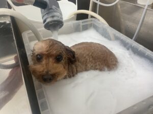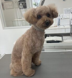2ヶ月毎にオゾンマイクロナノバブル浴のカットコースをご利用のT・プードルのココアくんは、体5㎜のテディベアお口まわりはふっくらと四肢細くのご注文です。