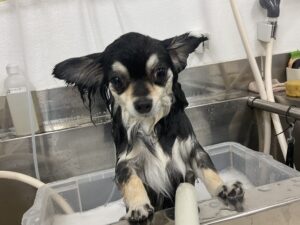 オゾンマイクロナノバブル浴のシャンプーコースをご利用のチワワのコテツくんです