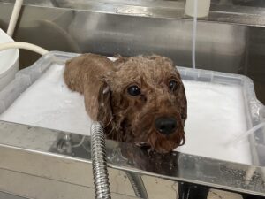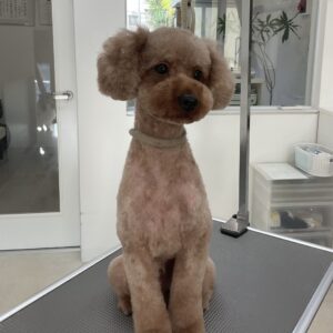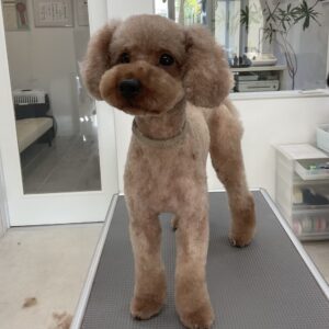 オゾンマイクロナノバブル浴のカットコースをご利用のトイプードルのコロンくんは、体3㎜テディベア四肢細くお耳も丸くのご注文です