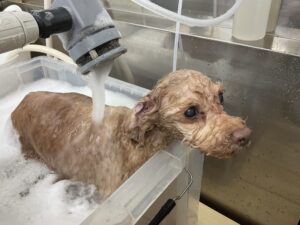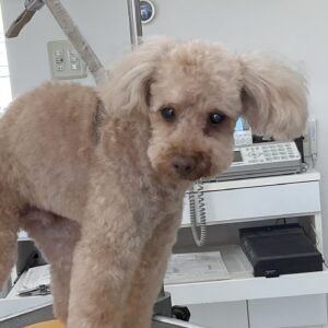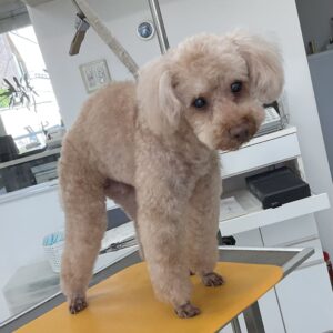 毎月オゾンマイクロナノバブル浴+炭酸泉浴+歯磨きのカットコースをご利用のT・プードルの16歳ゴン太くんは体5㎜四肢細くふっくらマズル のご注文です